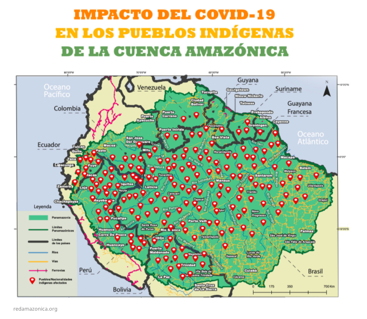 Del total de los 375 pueblos indígenas amazónicos reconocidos oficialmente, 172 de ellos ya presentan casos de contagio y muerte por la covid-19. Este 10 de julio, varios representantes de pueblos originarios de la Amazonia se reunieron con la Comisión Interamericana de Derechos Humanos (CIDH), denunciaron el abandono del Estado y solicitaron que intercedan para que los gobiernos garanticen el respeto a los derechos de estos pueblos, principalmente en este momento de urgencia sanitaria.